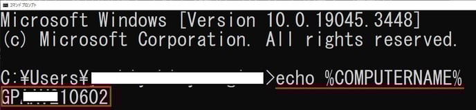 - echo %COMPUTERNAME% と入力し、Enterキーを押します。