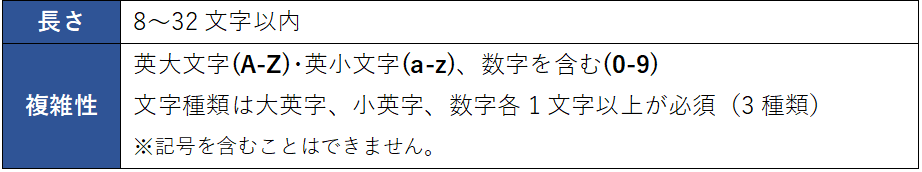 新しいパスワードの文字列がパスワードポリシーに沿っているかご確認ください。