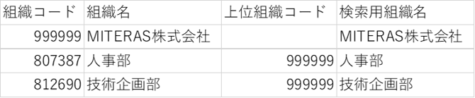 - 上位組織は、組織マスタに存在する組織を指定して下さい。存在しない組織を指定した場合、その組織に所属するユーザを閲覧することができません。
