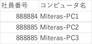 コンピュータ名2:MITERAS-PC - PCの利用者は1台につき1名のみとなるように登録してください。コンピュータマスタを利用している環境で、複数の利用者が1つのPCを共有している場合、利用者判別ができず、正常なデータの取得ができません。