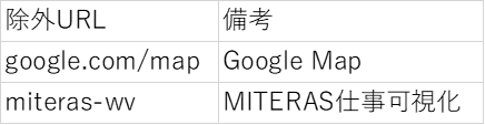 入力文字:半角英数字除外URL 必須 MITERAS仕事可視化に登録したくないURLの文字列を入力します。