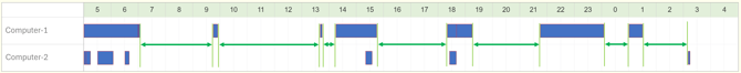 - 複数台のPCで共通して無操作となっている時間を無操作時間として集計します。
